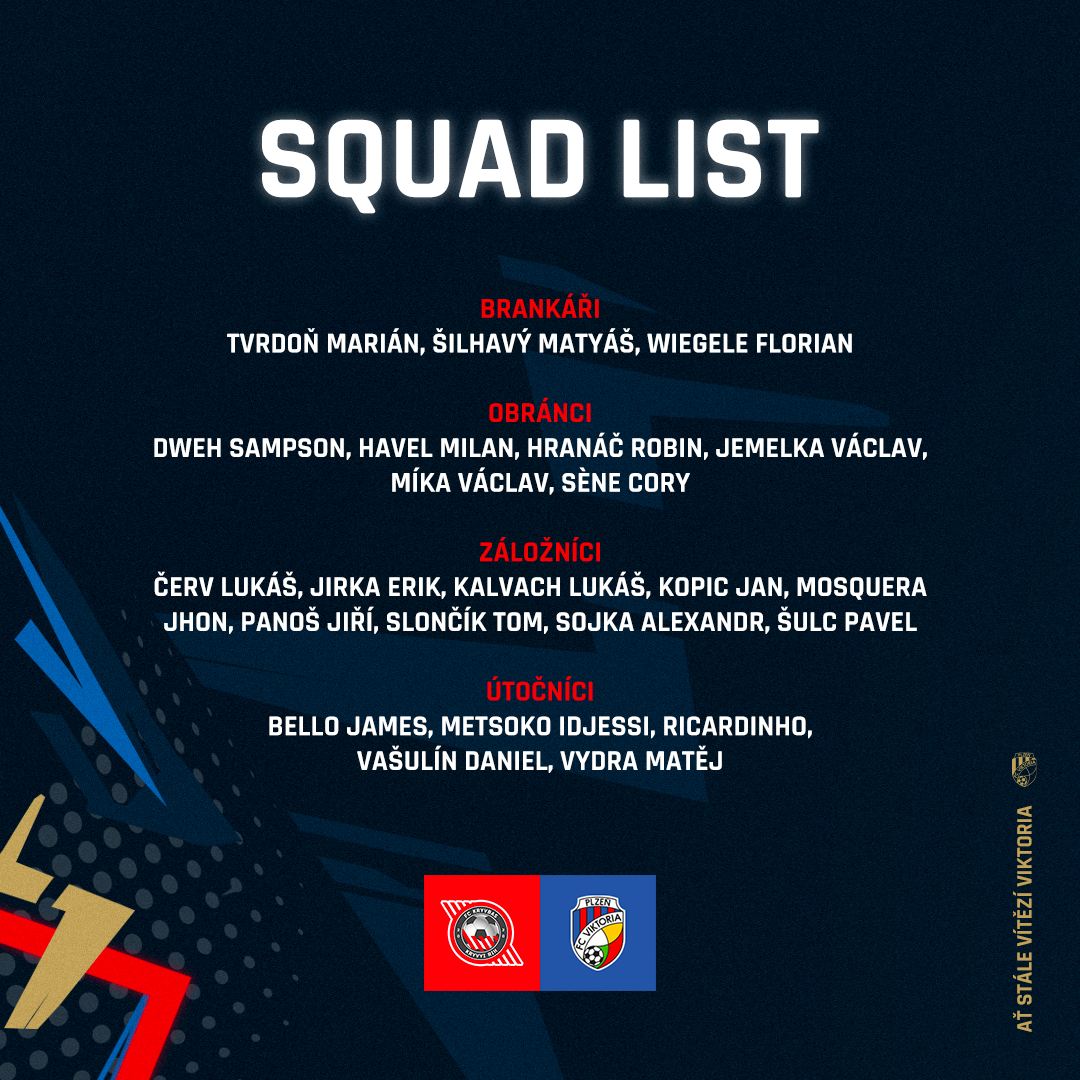 Zranění hráči jako Cheick Souaré, Matěj Valenta, Luká Hejda nebo Chris Kabongo i nemocný Martin Jedlička zůstali doma, jinak letí vichni hráči. Celkem dvacet hráčů do pole a tři gólmani.