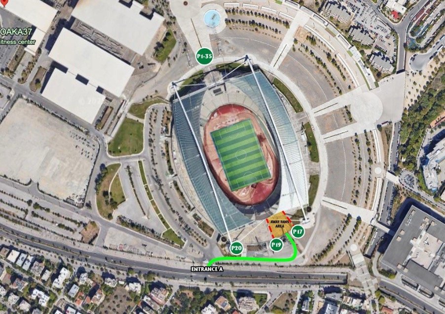 Po utkání budou muset fanouci zůstat na stadionu zhruba 30 minut z bezpečnostních důvodů. Po zápase vás autobusy odvezou ze stadionu zpět na Kallimarmaro stadium.
