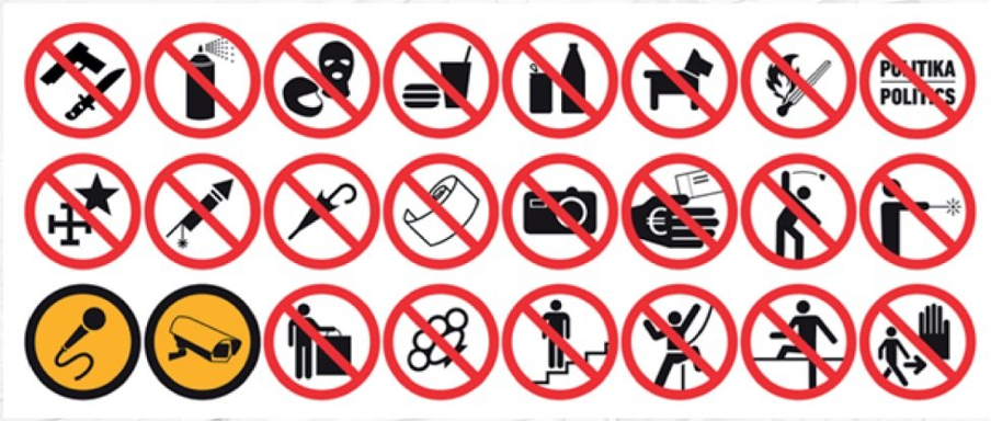Na stadion nebudete vputěni také s batohy, které budete muset nechat před vstupem. Zanechte je na hotelu nebo v autě/autobusu.