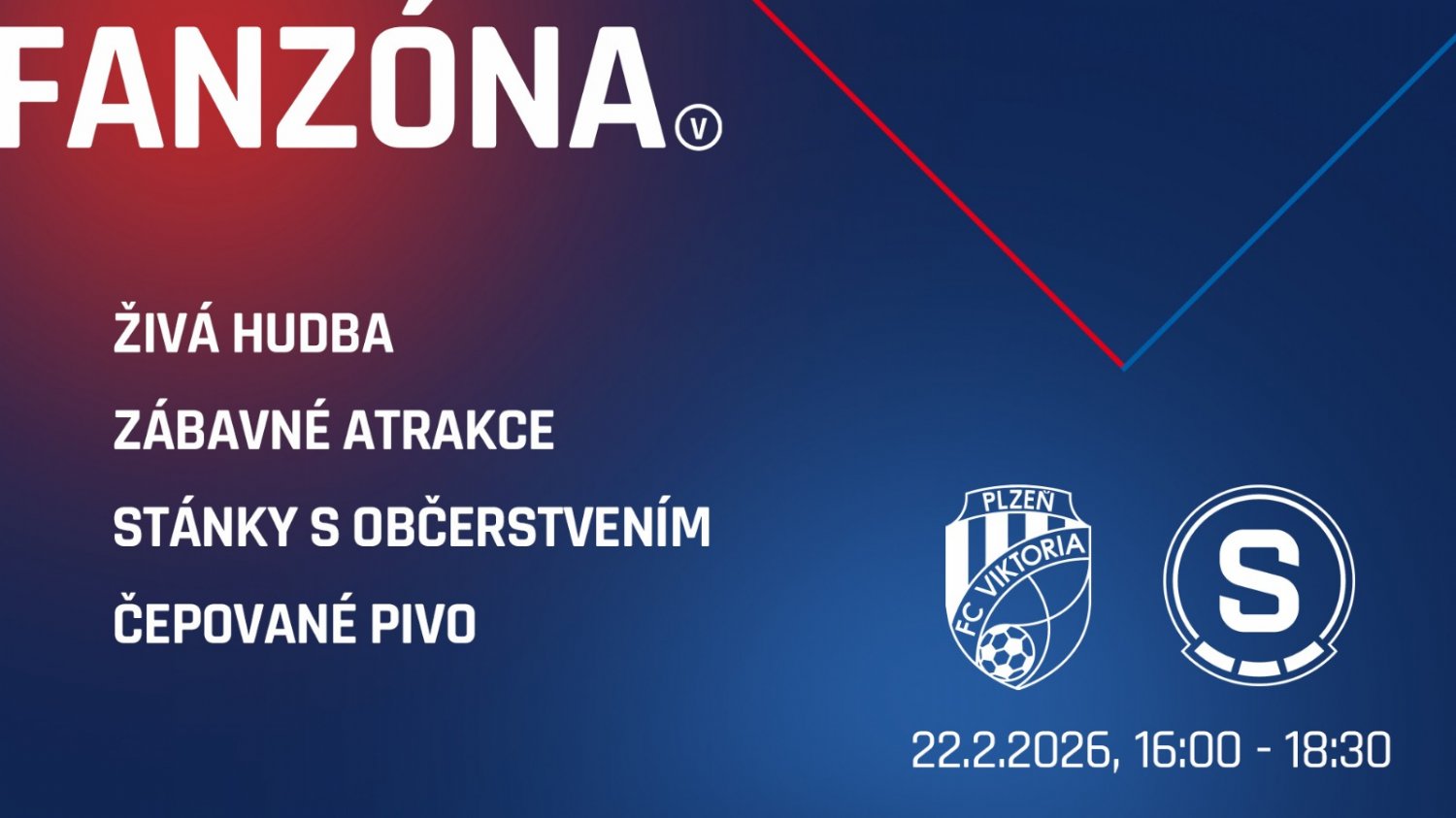 V neděli si mohou fanouci čekání na fotbal zkrátit v naí fanzóně, která nabídne bohatý program i občerstvení od 16:00. Najdete ji tradičně mezi sektory P a R.