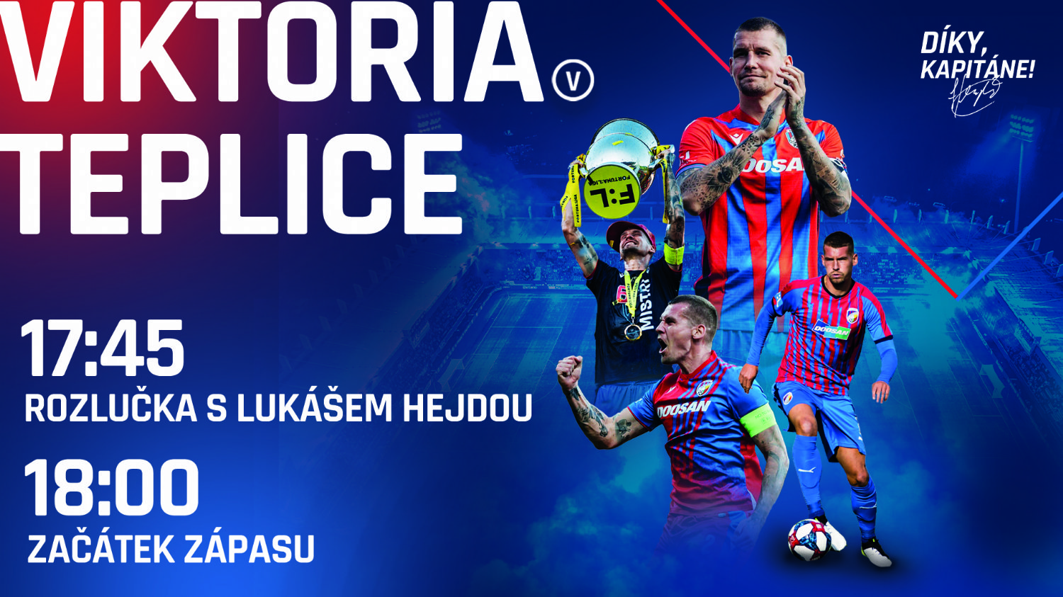 Viktoria Plzeň nastoupí k dalímu ligovému utkání a v sobotu od 18:00 na domácím hřiti přivítá Teplice. Fanouky v Doosan Areně čeká kromě samotného zápasu také speciální moment v podobě rozloučení s dlouholetým kapitánem a klubovou legendou Lukáem Hejdou. Přináíme vám přehled vech důleitých informací, které by vám před utkáním neměly uniknout.