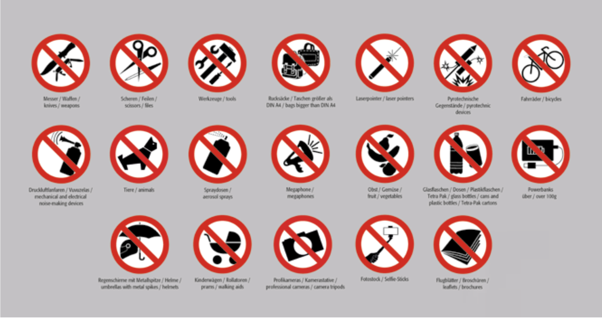 Dalí věci, které do Allianz Areny nepatří, jsou znázorněny na obrázku.