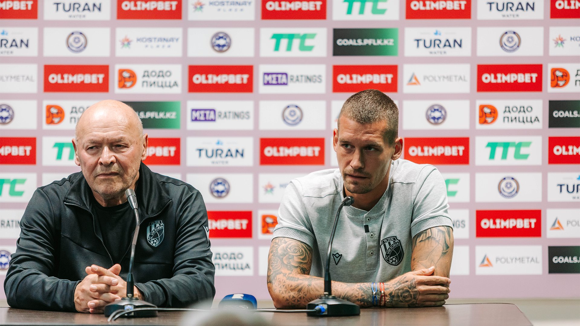 Před prvním zápasem play off Evropské konferenční ligy proti Tobol Kostanay odpovídali na otázky novinářů hlavní trenér Miroslav Koubek a kapitán Luká Hejda.
