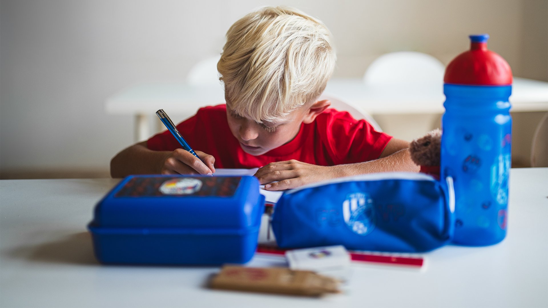 Sleva se týká konkrétně těchto produktů - Ořezávátko, guma, propiska, obyčejná tuka, pastelky, pravítko, penál Football, pouzdro na tuky, box na svačinu, lahev na pití (700 ml), sáček na přezůvky, batoh kolní, aktovka kolní, zápisník UEL, zápisník A5 černý, zápisník A5 FCVP, medvídek, samolepky (4 druhy), peněenka černá textilní, peněenka modrá na krk.